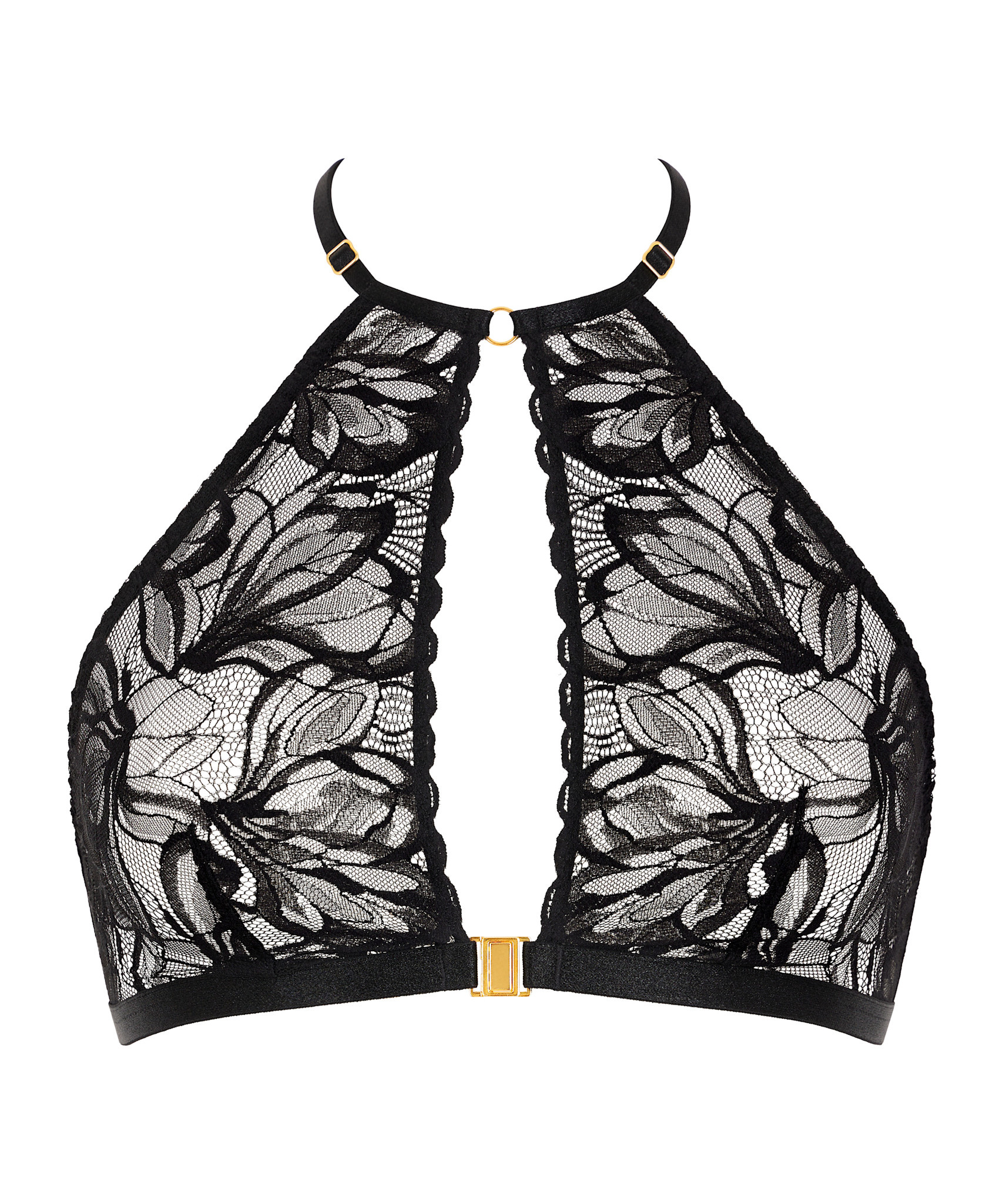 Fabelachtig sexy, de After Hours bralette van de After Hours collectie van Aubade. De bralette heeft een diepe decolleté omringd door bloemenkant en geaccentueerd door een gouden sluiting. In een ontwerp zonder beugel omhelst het de vorm van de buste voor