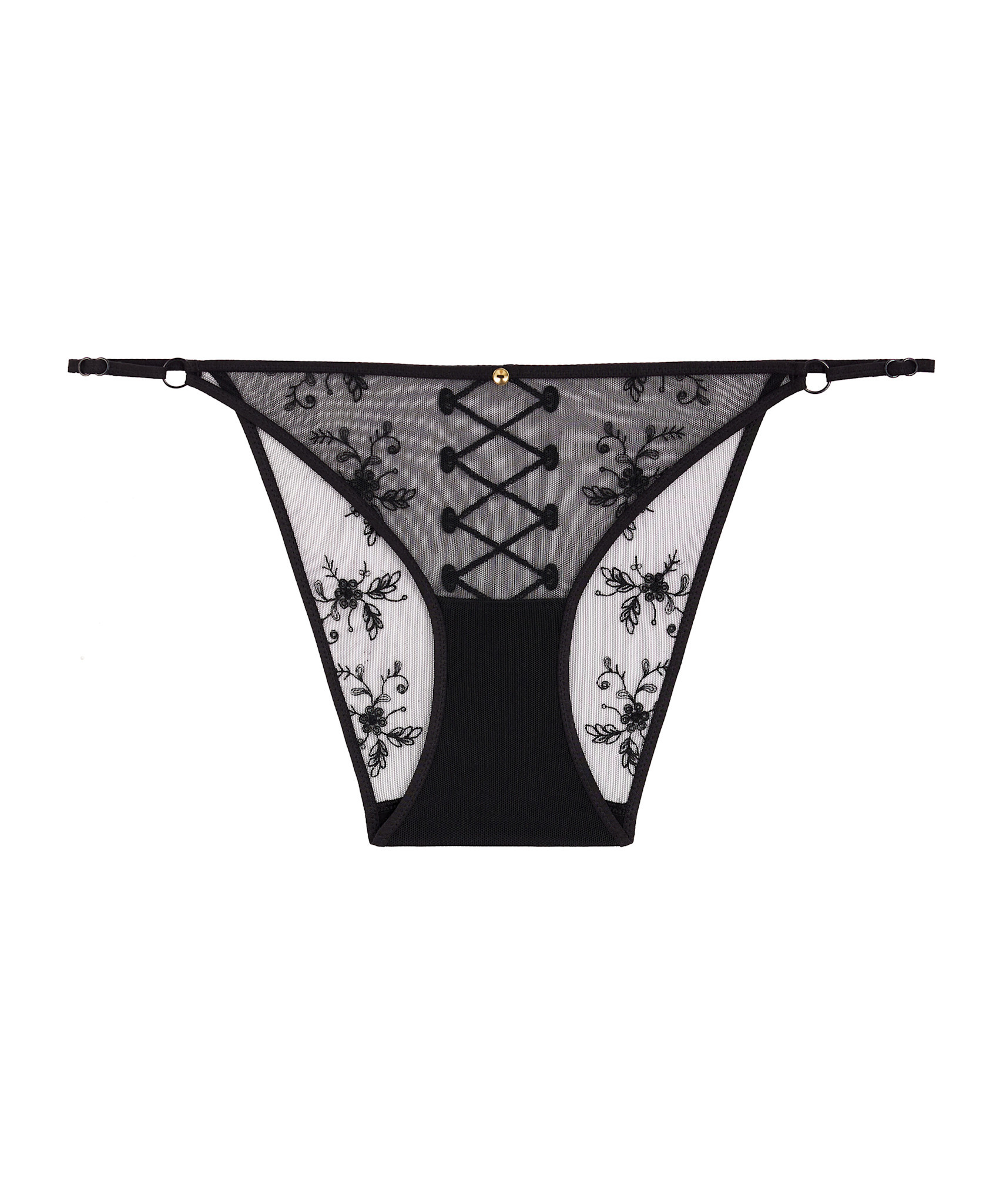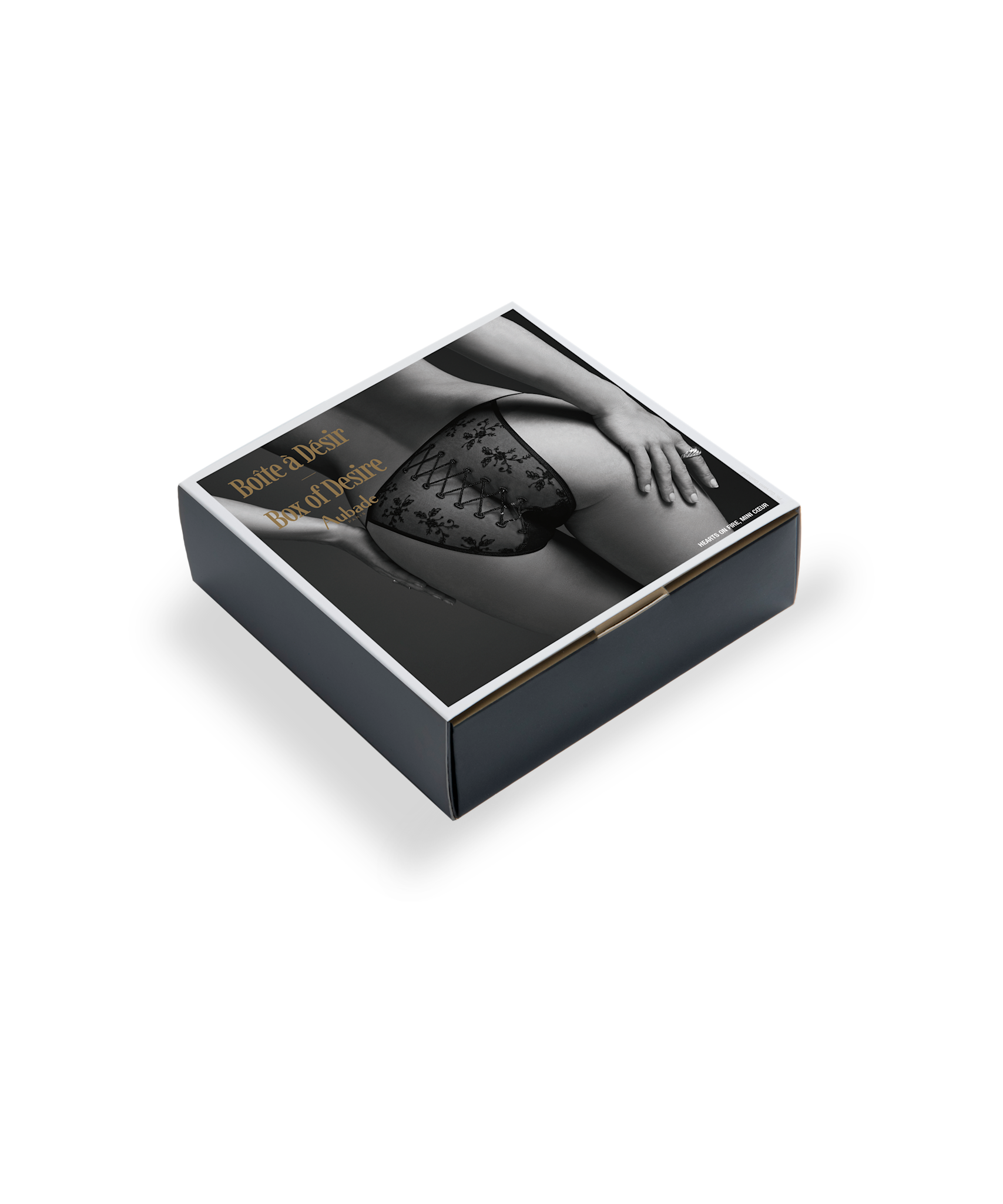 Een Boîte à Désir doosje van Aubade met een transparant slipje in een zwarte glitter kleur. Pak het uit en geniet! Het slipje is verstelbaar in maat en geschikt voor XS, S, M en L.