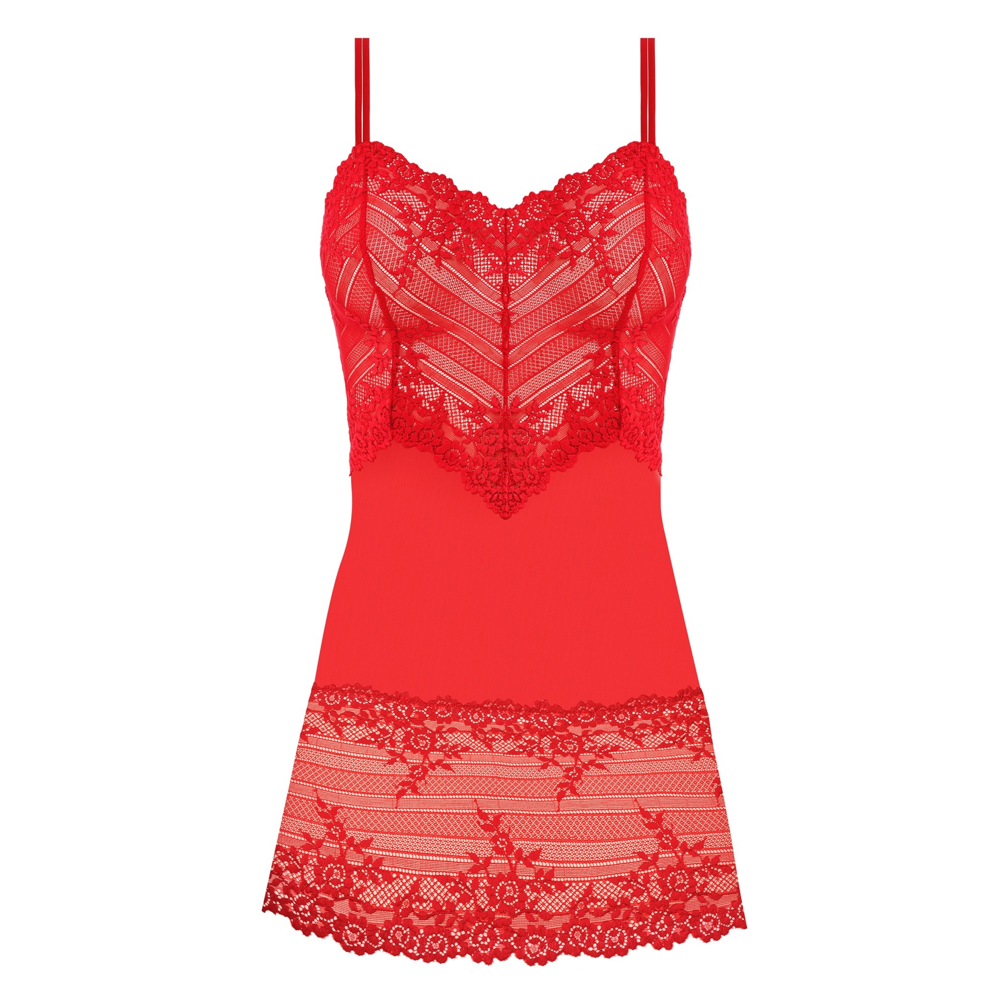 Het jurkje Embrace Lace van Wacoal is ontzettend elegant en valt verleidelijk over het lichaam. Het jurkje is van een transparant mesh-stofje in de kleur Equestrian Red, een vel rode kleur. En omlijst embroiderie.