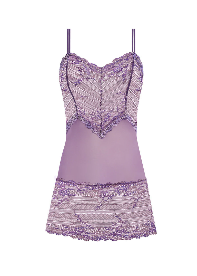 Het jurkje Embrace Lace van Wacoal is ontzettend elegant en valt verleidelijk over het lichaam. Het jurkje is van een transparant mesh-stofje in de kleur Grape. Een bijzondere, licht paarse kleur.