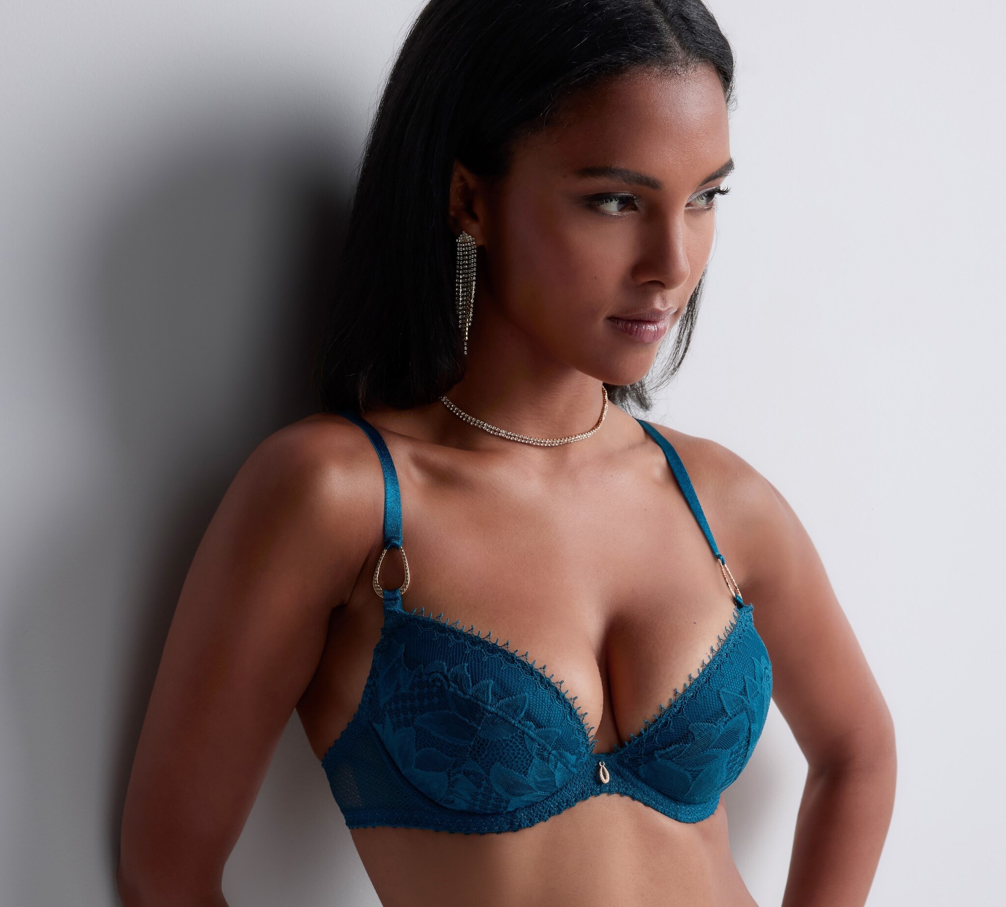 Flawless Love van Aubade is weer een meesterwerk. Flawless Love in de kleur Dragonfly is comfortabel en sexy. De Push up BH geeft een fantastische decolleté en het verfijnde wimperkant valt prachtig over de borsten heen. De cups hebben een push up kussent