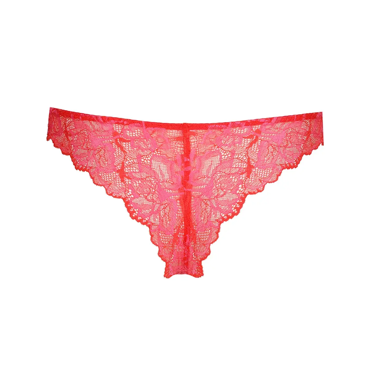 De string van Manyla van Marie Jo is uitgevoerd in de kleur Pixie Red. Deze collectie heeft all-over lace met prachtige rood en roze gemixte kleuren.