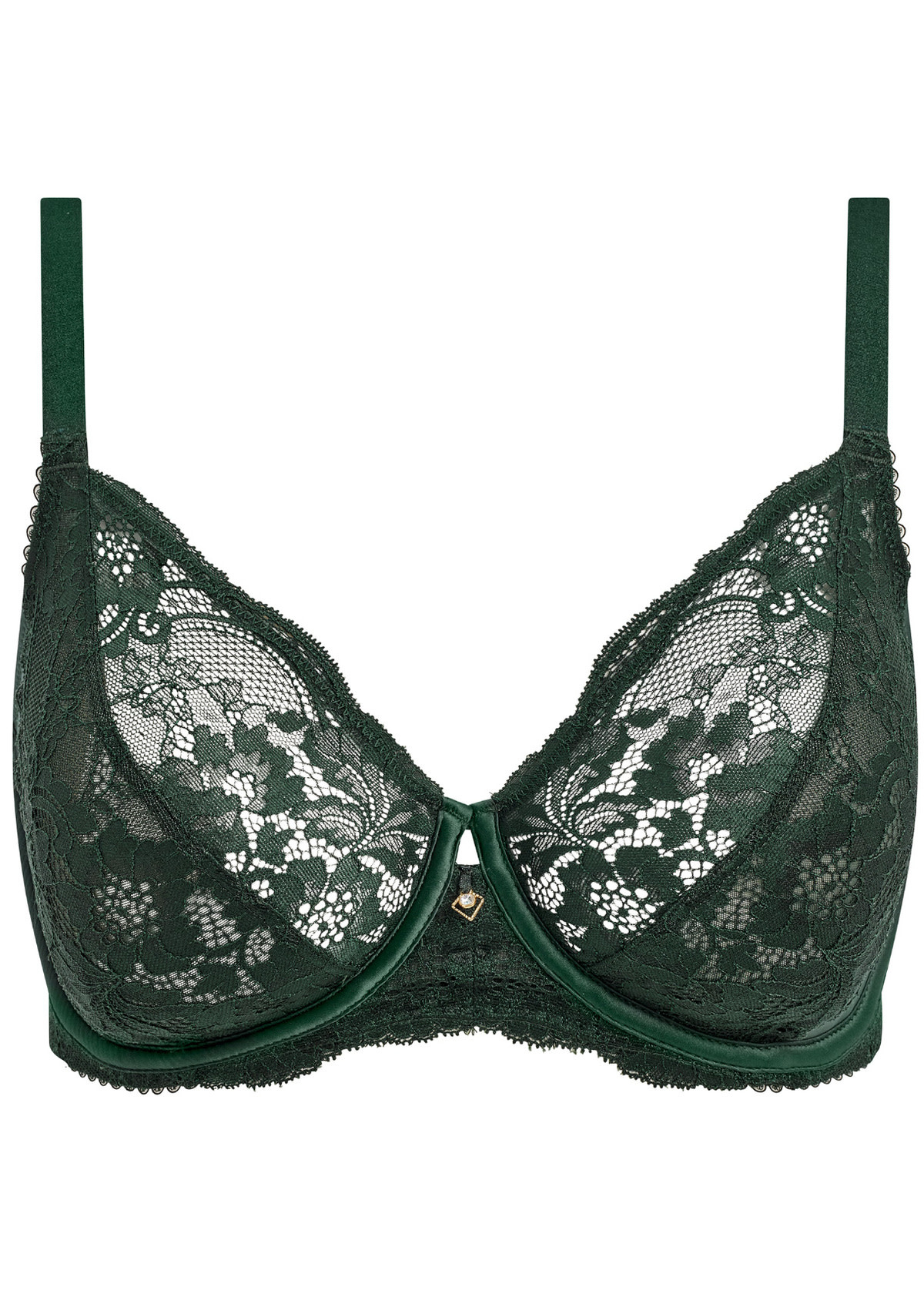 Natsuki Lace van Wacoal heeft een bijzondere, diepe bosgroene kleur. De mesh stof en het stretchkant wordt gecombineert met satijnen accenten, wat resulteert in een verfijnde collectie. De BH is een BH met beugel en zonder padding. Style de Natsuki Lace BH met de Natsuki Lace tanga.