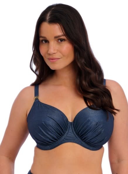 Paros Coast wordt uitsluitend als een geheel bikinisetje verkocht: broekje en top. En ook als geheel setje weer retour aangenomen. Zo kunnen we al onze klanten een volledig setje aanbieden. Paros Coast van Fantasie heeft een stevige full cup en een hoger aangesloten broekje. De stof is donkerblauw met een zachte glitter. Een mooie bikini voor vrouwen die een bikini willen met een stevige cup, bedekkend broekje en ook een vleugje glamour willen.
