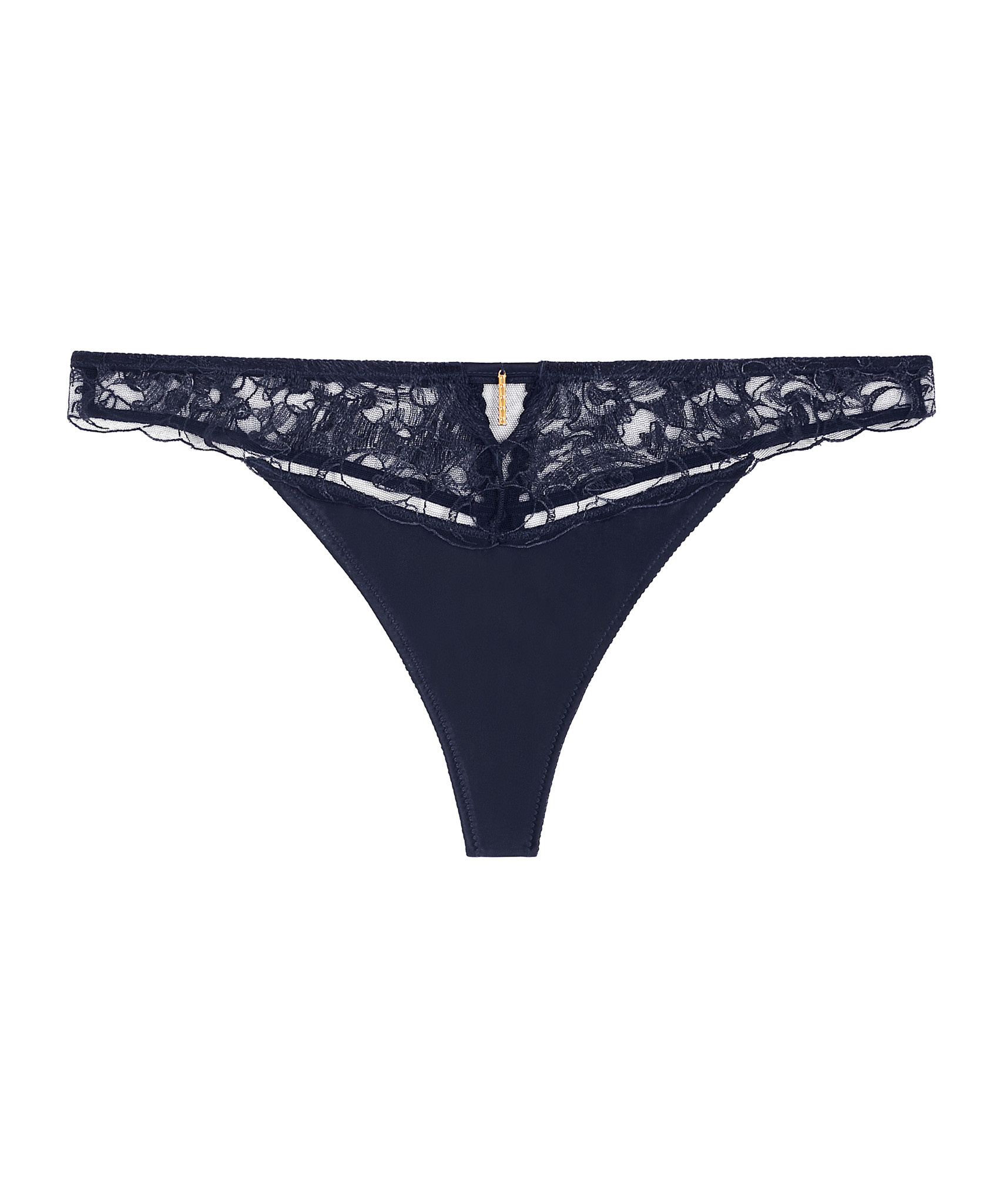 De Satin memories collectie van Aubade in de kleur Deep Sea heeft een diepe, donkerblauwe kleur. Satin memories is zeer zacht, glanzend satijn gecombineerd met Frans borduurwerk afgewerkt met een op bamboe geïnspireerde goudkleurig bedeltje. Style de string met de jarrtel, bustier van Satin Memories.