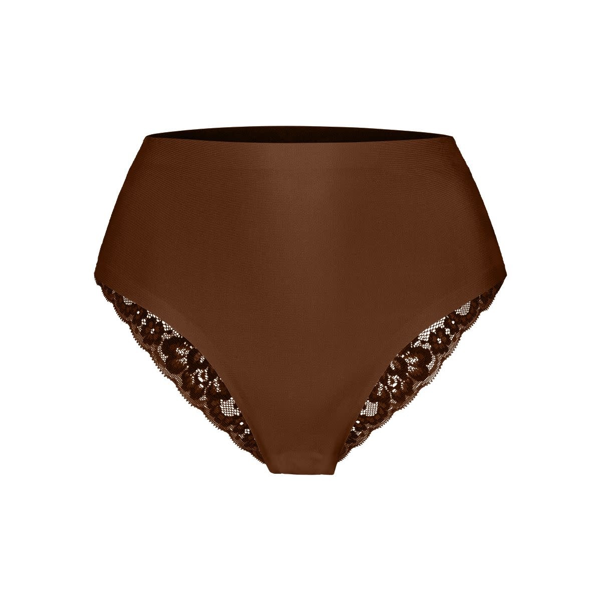 De ten cate Secrets High waist Brazilian met kant is een super fijne, naadloze basic slip. Door de naadloze verwerking van de stof draagt het als een tweede huid en is het daarom ook erg geschikt om te dragen onder aansluitende kleding. De fluweelzachte a