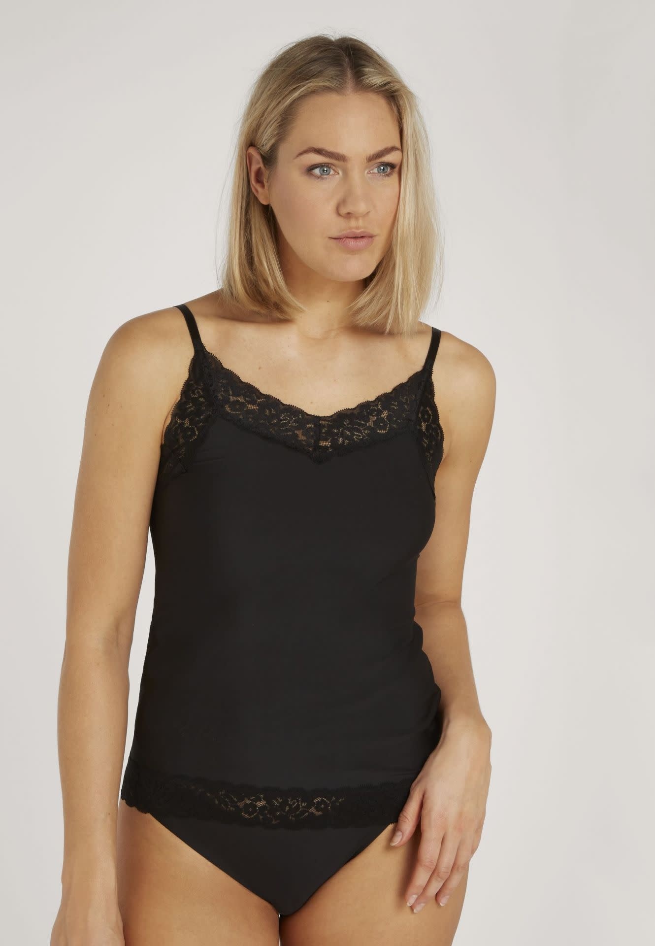 De Secrets Spaghetti Top met kant is stevig en ademend. De naden zijn super plat doordat ze op elkaar geplakt zijn, hierdoor draag je de spaghetti top als een tweede huid onder je kleding. De elastische bandjes zijn makkelijk verstelbaar. De fluweelzachte