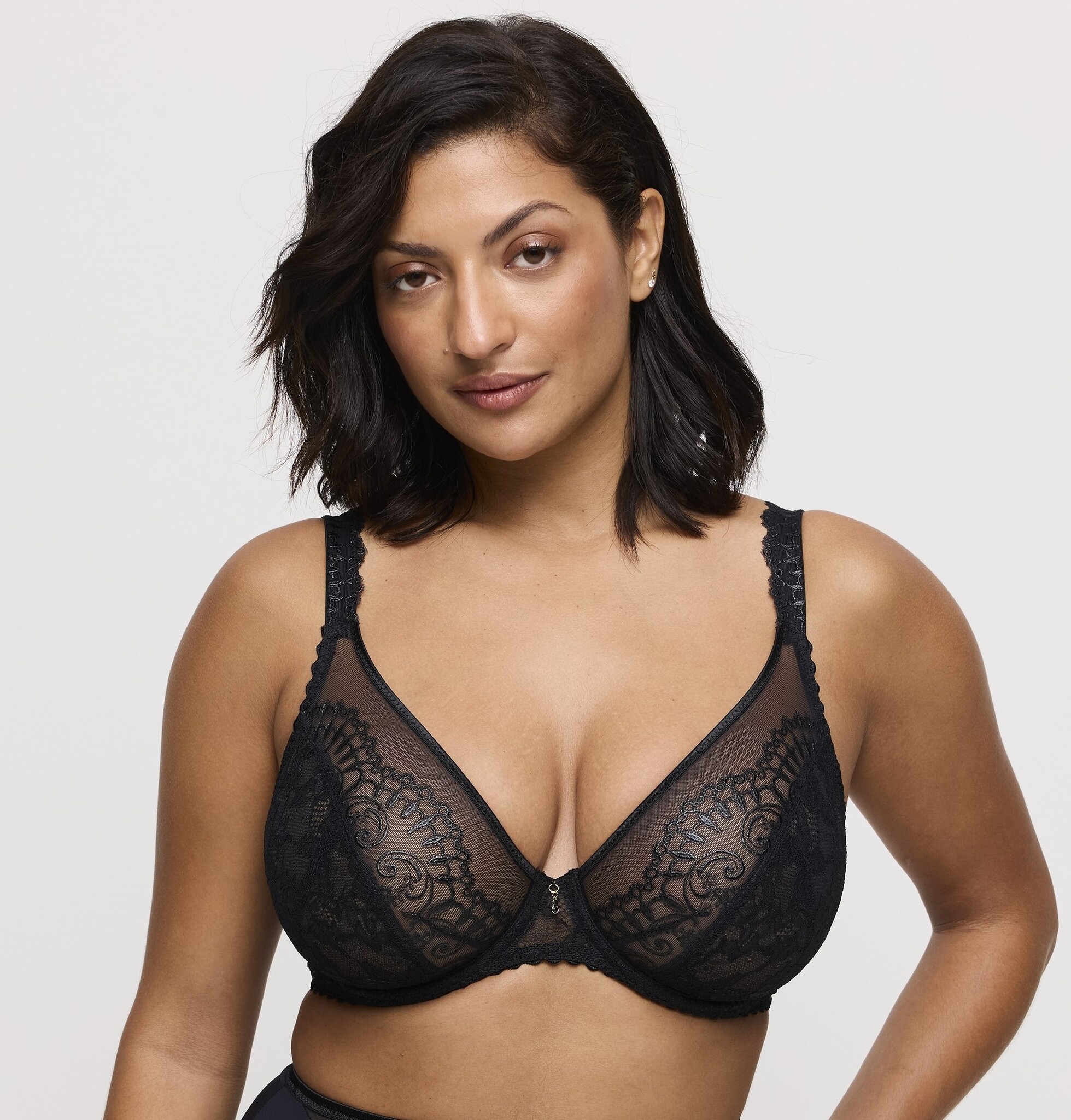 Shimla van PrimaDonna is gemaakt van Italiaanse broderie met stretchkant en glinsterende, fijne details. De Plunge BH geeft een zeer stevige support en is toch elegant en semi transparant. Style de BH met een slip of string van Shimla.
