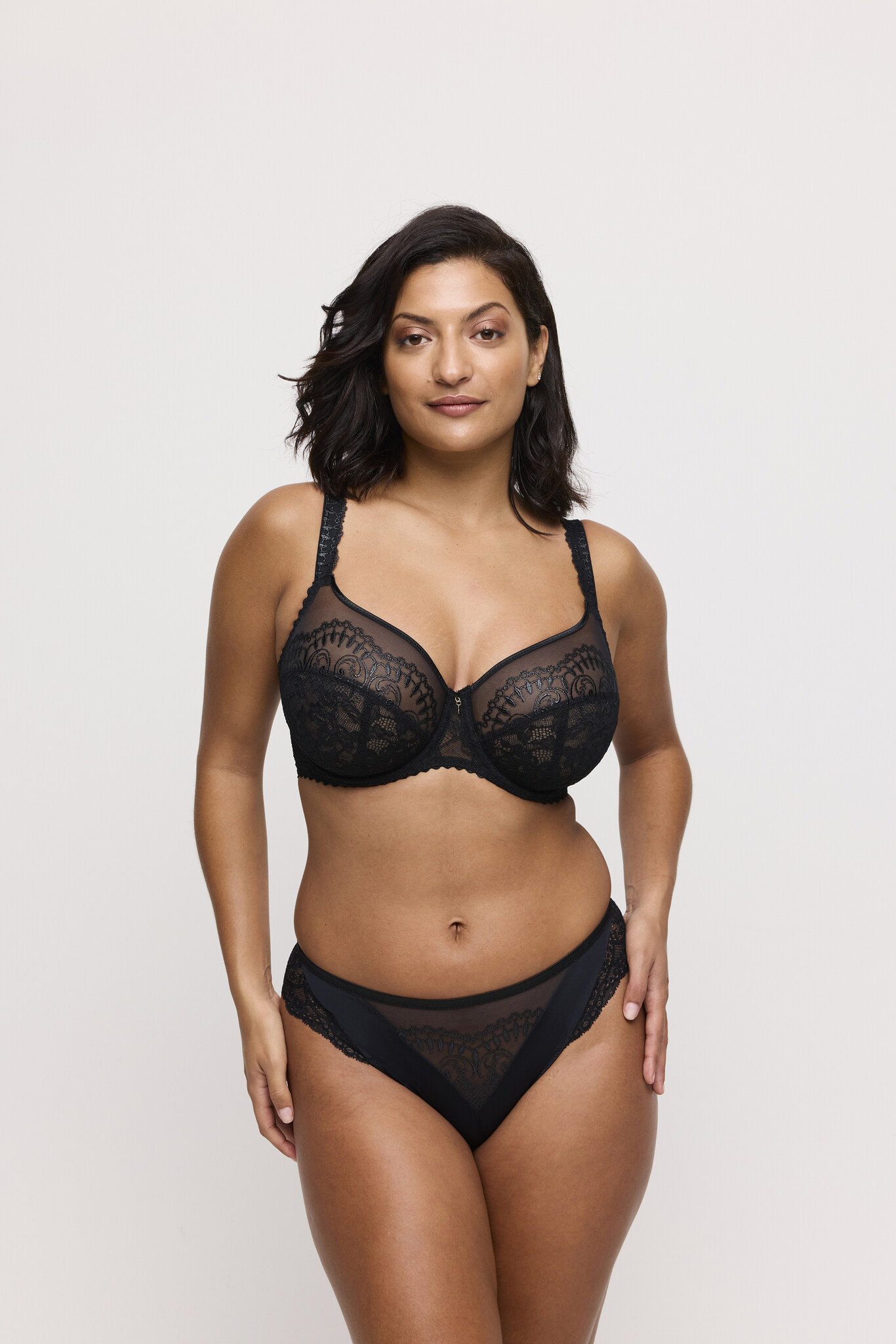 Shimla van PrimaDonna is gemaakt van Italiaanse broderie met stretchkant en glinsterende, fijne details. Style de String met de BH van Shimla.